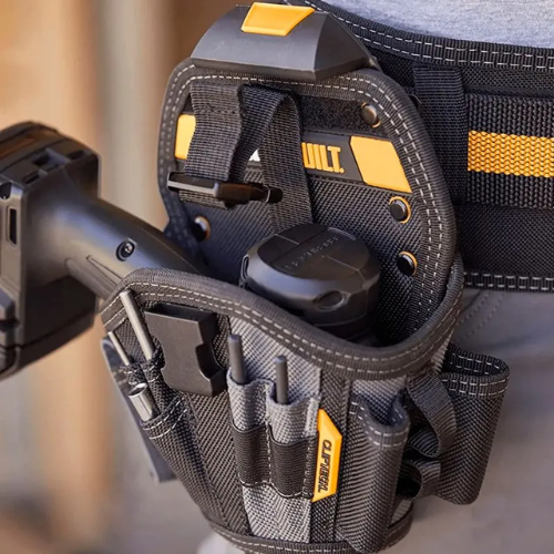 A Bolsa ToughBuilt TB-CT-20-L foi projetada para transformar a maneira como profissionais transportam e acessam suas furadeiras. Com o sistema patenteado ClipTech™ Hub™, ela pode ser facilmente presa ou removida de qualquer cinto, oferecendo mobilidade inteligente e uso sob demanda — ideal para quem precisa carregar apenas o essencial.