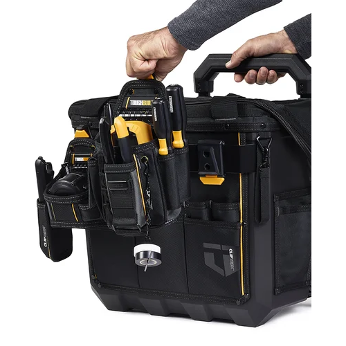 A Bolsa ToughBuilt TB-CT-61-18 com rodas foi projetada para revolucionar o transporte de ferramentas e suprimentos em campo. Com estrutura rígida, rodas off-road e alça retrátil, ela oferece mobilidade incomparável, mesmo em terrenos irregulares. Sua abertura superior patenteada é mais ampla do que qualquer outra no mercado, garantindo acesso rápido e visibilidade total do conteúdo interno.