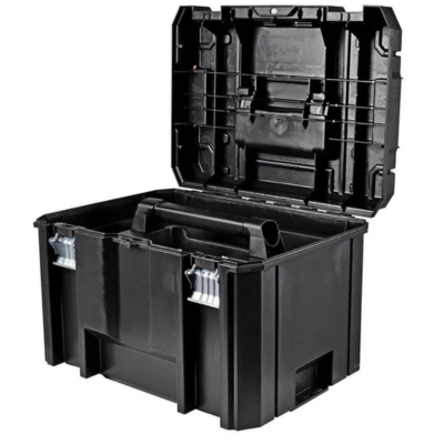 A Caixa Organizadora com Fecho Metálico DWST17806 TSTAK Dewalt é uma solução eficiente para profissionais que buscam resistência, versatilidade e organização no transporte de ferramentas. Com plataforma modular flexível, permite empilhamento com outros modelos da linha TSTAK, facilitando o armazenamento inteligente no canteiro de obras ou na oficina.