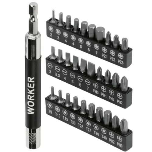 O Jogo de Bits Worker com 31 Peças é a solução versátil e resistente para quem busca eficiência em trabalhos manuais. Produzidos em aço cromo vanádio e submetidos a tratamento térmico, os bits oferecem excelente durabilidade e resistência ao desgaste, mesmo sob uso intenso.