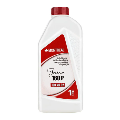 O Fator 160P da Montreal é um óleo mineral de alta qualidade, classificado como ISO VG 32, desenvolvido para lubrificação de compressores em sistemas de refrigeração. Compatível com refrigerantes como R22, R134a, R404A e R407C, é indicado para sistemas que não exigem óleos sintéticos ou POE.